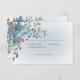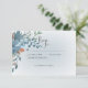 Este diseño de tarjeta de respuesta boda presenta hermosas flores de esquina de color de color de roya azul y naranja quemado en un rectángulo de color azul suave colocado sobre un fondo blanco. Suave y delicada, perfecta para cualquier temporada. Creado por Simply Farmhouse Press.