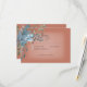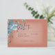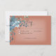 Este diseño de tarjeta de respuesta boda presenta hermosas flores de esquina de color de agua azul y naranja quemado sobre un rectángulo blanco suave colocado sobre un fondo de roya naranja quemado. Suave y delicada, perfecta para cualquier temporada. Creado por Simply Farmhouse Press.