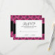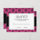 Esta elegante tarjeta RSVP presenta un elegante diseño de damasco rosa y negro.