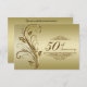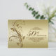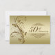 Una imagen de diseño de Digitalbcon con un tema de color dorado con una variedad de imágenes personalizadas, formas, patrones, estilos y fuentes en esta tarjeta de "respuesta para aniversario dorado" única. Esta tarjeta elegante y atractiva viene completa con un diseño complementario en el reverso con letras de texto personalizables para adaptarse a su ocasión especial.
