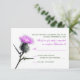 Esta elegante y moderna tarjeta de respuesta de boda de color rosa, púrpura y verde Thistle tiene un cardo de Canadá estilizado sobre un fondo blanco que coincide con la invitación de boda que se muestra a continuación. Sería perfecta para una boda escocesa. Agregue su propio tartán del clan al fondo de la parte posterior. También funcionaría bien para una boda casual de primavera o verano o aniversario. El texto y el papel son totalmente personalizables. ***POR FAVOR TOME NOTA de que si cambia la fuente o el tamaño de la fuente, puede alterar la forma en que se imprime su invitación. Se imprimirá tal como lo ve en su monitor, por lo que si tiene problemas de alineación o tamaño, por favor contácteme para obtener ayuda. No veré su invitación una vez que la ordene, y Zazzle NO editará nada (errores tipográficos, alineación, etc.). Si necesita ayuda o desea