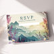 Abrace el espíritu rejuvenecedor de la primavera con la Tarjeta de Respuesta para Bodas de Montañas Florales de Primavera. Esta tarjeta presenta una cautivadora combinación de diseños florales frescos sobre un fondo de serenos paisajes montañosos. Elaborada en papel de alta calidad, ofrece un formato de respuesta sencillo en tipografía clara y moderna, lo que garantiza un proceso de respuesta fácil para sus invitados. Ideal para una boda de primavera, al aire libre o con tema floral, esta tarjeta de respuesta encapsula bellamente la frescura y la grandiosidad de la temporada, lo que la convierte en un complemento encantador para la correspondencia de su boda.