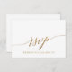Esta elegante tarjeta de respuesta RSVP de sitio web de boda con caligrafía dorada es perfecta para una boda simple. El diseño neutral presenta una tarjeta minimalista decorada con tipografía romántica y caprichosa de lámina dorada falsa. Personalice la tarjeta de respuesta en línea con su RSVP por fecha y dirección del sitio web de la boda. Si sus invitados no necesitan una contraseña del sitio web, puede reemplazar el texto con un método alternativo de RSVP o un breve mensaje para sus invitados.