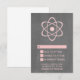 Tarjeta de respuesta Boda de tablero atómico de color dulce y nerd con un simple símbolo atómico en color rosa claro sobre un fondo de pizarra. ¡Esta tarjeta RSVP de bodas geek y divertida es perfecta para la pareja de entusiastas de la ciencia! Fácil de personalizar, simplemente añada los detalles de su boda en los espacios proporcionados. Haga clic en "Personalizar" para encontrar más opciones de personalización.