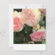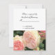 Elegantes rosas rosa y crema con follaje verde. Flores románticas de jardín. Un fondo blanco permite ver el texto en esta tarjeta de respuesta RSVP.