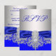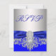 Hermosa tarjeta de respuesta azul real y plata RSVP. Puede personalizar fácilmente esta elegante y ornamentada tarjeta de respuesta RSVP de cumpleaños número 16, boda u otro evento azul real y plata, simplemente agregando los detalles de su evento en la parte delantera y trasera en el estilo de fuente y color, redacción y diseño de su elección.