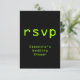 Este diseño de tarjeta de respuesta R.S.V.P. con tema de informática y estilo digital presenta el mensaje "rsvp" en la parte frontal, junto con el nombre personalizado del evento. También cuenta con un formulario de RSVP personalizado en la parte posterior para que el destinatario lo complete. Tarjetas de RSVP como esta podrían usarse para saber quién asistirá a una ducha de boda, una fiesta de graduación, una fiesta de jubilación, una recepción de boda o algún otro evento.