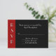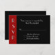 Tarjeta de respuesta RSVP para eventos de todo propósito, realizada en un estilo Art Deco, con fondo rojo y negro, con RSVP, en blanco, corriendo vertical hacia el lado izquierdo. El texto en blanco es totalmente personalizable para satisfacer sus necesidades de eventos. Ideal para bodas, aniversarios y otros eventos especiales.