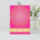 Esta tarjeta de respuesta de boda exótica en rosa caliente y dorado tiene un gran patrón de medallón de círculo de pergamino dorado central con corazones intrincados y estrellas doradas y puntos que se superponen sobre un fondo de color rosa fucsia con otra capa de delicados remolinos y pergaminos de color lavanda brillante que coinciden con las invitaciones de boda que se muestran a continuación. ****POR FAVOR TOME NOTA de que ninguno de los elementos de esta invitación está elevado o grabado. Todo está impreso plano. Esta invitación sería perfecta para una ceremonia de boda india, hindú, sánscrita o musulmana en primavera, verano, otoño o invierno, y también funcionaría bien para otros eventos formales que requieren clase y gusto. Se muestra aquí en papel básico. Si desea un papel de mayor peso, sugiero el papel metálico hielo o champán, que le daría un hermoso brillo opalescente. NO sugiero usar el papel dorado metálico, ya que es un dorado muy oscuro y broncíneo que alterará realmente el diseño. TAMBIÉN, si cambia el tamaño de la invitación, o si cambia las fuentes, o el tamaño de la fuente, parte del diseño y/o texto pueden cortarse. Todo se imprimirá como lo ve en su monitor. No veré su invitación, y Z