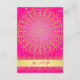 Esta tarjeta de respuesta de boda exótica en rosa caliente y dorado tiene un gran patrón de medallón de círculo de pergamino dorado central con corazones intrincados y estrellas doradas y puntos que se superponen sobre un fondo de color rosa fucsia con otra capa de delicados remolinos y pergaminos de color lavanda brillante que coinciden con las invitaciones de boda que se muestran a continuación. ****POR FAVOR TOME NOTA de que ninguno de los elementos de esta invitación está elevado o grabado. Todo está impreso plano. Esta invitación sería perfecta para una ceremonia de boda india, hindú, sánscrita o musulmana en primavera, verano, otoño o invierno, y también funcionaría bien para otros eventos formales que requieren clase y gusto. Se muestra aquí en papel básico. Si desea un papel de mayor gramaje, sugiero el papel metálico hielo o champán, que le daría un hermoso brillo opalescente. NO sugiero usar el papel metálico dorado, ya que es un dorado muy oscuro y broncíneo que alterará realmente el diseño. TAMBIÉN, si cambia el tamaño de la invitación, o si cambia las fuentes, o el tamaño de la fuente, parte del diseño y/o texto puede cortarse. Todo se imprimirá como lo ve en su monitor. No veré su invitación, y