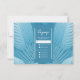 Crear tarjetas RSVP de boda modernas y cautivadoras. Presenta hojas tropicales en tonos de color verde azulado. Se utiliza para complementar temas de bodas tropicales y eventos especiales usando el azul verde azulado como color focal. La parte delantera de la tarjeta tiene el término "RSVP". La parte trasera dispone de los detalles de respuesta para sus huéspedes, incluyendo las opciones de comida. Utilice la plantilla para personalizar.