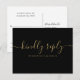Tarjeta de respuesta RSVP de canción negra y dorad