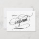 La tarjeta de respuesta RSVP de elegante escritura caligráfica Chic es la tarjeta RSVP moderna simple elegante perfecta. Puede ser negro y blanco o puede cambiar el fondo a un color personalizado que complementará el texto negro.