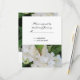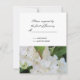 Esta tarjeta de respuesta RSVP contiene hortensias blancas con un follaje verde crudo sobre un acento de fondo blanco.