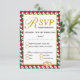 Elegante tarjeta de respuesta RSVP de boda con borde de la bandera de MÉXICO en patrón de baldosa y contorno de oro. El mensaje al revés dice 'Y los dos se convertirán en uno'. Elementos coincidentes disponibles. El texto puede ser totalmente personalizado con su propio mensaje y contenido. Se puede usar para bodas y otras celebraciones. Estar orgulloso de su herencia en su día especial.