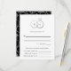 Un monograma moderno recibe el brillo con anillos de boda plateado entrelazados y un texto personalizado que hace de ésta una nueva invitación de boda clásica con texto simplificado en blanco y negro limpio. Personalice todo el texto de esta tarjeta de respuesta de invitación para una tarjeta del recinto del personalizado con información sobre la elección de comida para sus invitados.