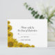 Par la tarjeta de respuesta RSVP de la boda del borde del girasol amarillo bonito con sus invitaciones para crear un conjunto coordinado de papelería matrimonial. Esta elegante tarjeta de respuesta boda personalizado florida con flores amarillas está decorada con un fondo blanco en las esquinas.