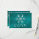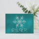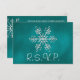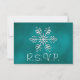 Hermosas tarjetas de respuesta boda con copos de nieve con dos copos de nieve bonito sobre un fondo azul turquesa turquesa verde brillante en un fondo azul turquesa pavo real. Perfecto para un maravilloso paisaje invernal o boda de temática Navidad. Pintura © Chrissy H. Studios, LLC. Todos Los Derechos Reservados.