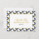 Elegante tarjeta de respuesta RSVP de boda con borde de BARBADOS en patrón de baldosa y contorno de oro. El mensaje al revés dice 'Y los dos se convertirán en uno'. Elementos coincidentes disponibles. El texto puede ser totalmente personalizado con su propio mensaje y contenido. Se puede usar para bodas y otras celebraciones. Estar orgulloso de su herencia en su día especial.
