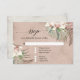 Tarjeta de respuesta RSVP de orquídea floral tropical con toque de rubor blanco para coordinar con nuestra suite de invitaciones de boda completa. Un fondo de papel rústico de color rosa pálido con textura vintage se combina con imágenes de acuarela pintadas a mano en un estilo boho floral con follaje de jungla en tonos terrosos apagados y hojas de palma para una boda con tema de playa, tropical o junto al mar. Copyright, Audrey Jeanne Roberts.