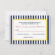 Esta invitación de boda con rayas azules y blancas de inspiración náutica con acentos de pergamino amarillos y texto rojo está en papel básico que coincide con la invitación de boda que se muestra a continuación. El texto y la elección de papel son personalizables. Si necesita algún artículo adicional que coincida, por favor envíe un correo electrónico a niteowlstudio@gmail.com con su solicitud.