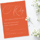 Esta tarjeta de respuesta RSVP bellamente diseñada es el complemento perfecto para el conjunto de invitaciones de boda de puesta de sol en Verona. Con un cálido y vibrante fondo de terracota y una elegante letra blanca, esta tarjeta permite a sus invitados responder fácilmente mientras mantiene la estética romántica y coherente de su boda. Es una parte clave de su conjunto de papelería, lo que garantiza un proceso de planificación suave y organizado.