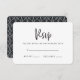 Tarjeta de respuesta rsvp de script geométrico. Parte de un conjunto de bodas geométricos de script. Blanco y negro monocromo.