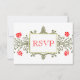 Tarjeta de respuesta RSVP floral elegante oro rojo