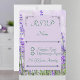Una elegante incorporación a la Colección Lavender Fields, esta tarjeta de respuesta RSVP redondeada en suave espliego de flores en el campo en flor como un toque encantador para su evento.