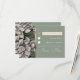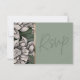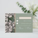 Esta tarjeta RSVP cuenta con un entorno verde sabio y sereno, con intrincados ilustraciones florales blancos y grises de champán en el lado izquierdo, lo que añade un toque natural y elegante. Las flores están bordeadas por una delgada línea metálica de oro que le da a la carta un aspecto refinado y pulido. El diseño combina el encanto rústico con el lujo moderno, combinando suaves tonos naturales con una estética depurada y depurada. Perfecto para los bodas, con un enfoque en la elegancia y los temas inspirados en la naturaleza.