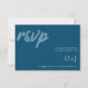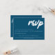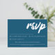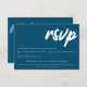 Esta es una tarjeta de respuesta de boda moderna azul marino con plantilla de opción de comida, que será ideal para cualquier boda. Esta tarjeta de respuesta es a doble cara y tiene monogramas y sitio web de la boda (opcional) en el reverso. Todo el texto es editable, solo haz clic en 'Personalizar esta plantilla'. También puedes cambiar el color de fondo, solo haz clic en "Personalizar más".