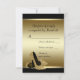 Tarjeta de respuesta con zapato de tacón alto negro y dorado con elegante fondo negro y dorado. Estas hermosas tarjetas de respuesta de zapato de tacón alto negro y dorado son perfectas para la fiesta de cumpleaños de una mujer, o para otro evento especial y se pueden personalizar con su texto en el estilo de fuente y color de su elección. Este es un diseño impreso sin purpurina real.