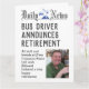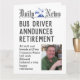 Tarjeta de jubilación en forma de periódico. Tarjeta de retiro del conductor del bus. Su elección de nombre y la foto añadidas como la persona que se retira.