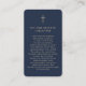 Dimensiones de la tarjeta de presentación: 3,5" x 2,0". Esta simple plantilla de tarjeta de plegaria conmemorativa en un fondo azul clásico con elegante tipografía de escritura dorada puede ser dada como un aguijón en una Celebración de la Vida o servicio funerario o como un tributo especial a los que no pudieron asistir. Personaliza esta tarjeta con una foto favorita y tu elección de oración o poema al dorso de la tarjeta. Fácil de personalizar.