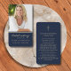 Tarjeta de rezo azul conmemorativa del guión dorad