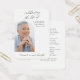 Minimalista tarjeta de oración de fotos del arco fúnebre para el funeral. Una simple tarjeta de oración incluye una moderna foto en arco de tu ser querido, su nombre y detalles con la frase "para siempre en nuestros corazones" junto con el tema de "celebrar la vida de". Lo contrario tiene un sincero poema conmemorativo. Usted puede usar lo que se proporciona o agregar su propio poema, oración o verso. En la tienda Beautifully Resumen, se pueden encontrar artículos que coincidan con la Modern Minimalista Celebrating the Life Of Funeral Collection.