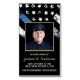 Esta tarjeta de rezo de fotos de los oficiales de policía de personalizable honra la vida y el servicio de un oficial caído. En la parte delantera hay una foto, el nombre del oficial, las fechas de nacimiento y final de la guardia, y la delgada bandera azul de la policía. Esta tarjeta sirve como un recordatorio duradero de la valentía y el sacrificio del oficial, proporcionando comodidad a la familia, amigos y colegas.