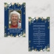 Recuerda a tu ser querido en su funeral y comparte una tarjeta de oración con tu familia y amigos con esta bonito y esta tarjeta de oración para fotos. Esta tarjeta de oración funeraria presenta un simple fondo azul con un marco dorado de bonito alrededor de una foto de tu ser querido. Hermosas flores blancas antiguas adornan la parte superior e inferior de la tarjeta. Ingresa a una oración en la espalda o guarda este conmovedor poema de Christina Rossetti. Inserte una foto de su ser querido en el frente con espacio para añadir un nombre, fechas y relación.