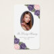 Elegante tarjeta de memoria floral púrpura y rosa/tarjeta de oración funeraria con una foto adornada con rosas púrpura y rosa y flores del aliento del bebé en un fondo blanco y claro.