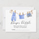 Una encantadora tarjeta de solicitud de rifa de pañales para baby shower con ropa de bebé boho.