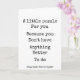 Una forma divertida y divertida de proponer. El frente dice "Un pequeño rompecabezas para ti porque no tienes nada mejor que hacer". Debajo exclama "¡Hey, eso fue una rima!" Lo que me sorprendió. El interior presenta una palabra que encuentra el rompecabezas en el que las palabras, tú, casarte, yo estoy escondido. Una forma bonita y divertida de proponer.