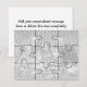 ¿Cansado de las mismas y aburridas tarjetas de felicitación? ¡Agrega tu propia foto y mensaje personalizado para crear una tarjeta de felicitación de rompecabezas "falso" de 9 piezas personalizadas para tu amigo o ser querido! Simplemente corta a lo largo de las líneas de las piezas del rompecabezas y colócalas en el sobre que acompaña. **NOTA: ESTO NO ES UN ROMPECABEZAS REAL y las piezas NO están perforadas - tendrás que cortarlas a mano** ¡El destinatario tendrá que armar el rompecabezas para ver tu saludo! Este producto está disponible en 6, 9, 12, 30 y 63 piezas.