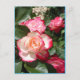 Tarjeta de Rosas Vintage de arte floral de color rosa rojo acuático flor. Diseñado a partir de mi foto original y de mi foto del jardín desde mi propio jardín.