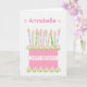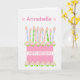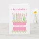 Una tarjeta de cumpleaños muy bonito para el personalizar en la portada, con una torta de cumpleaños rosa con muchas velas con motivos. La tarta es rosa, con un patrón de punto de polka y decorada con cúmulos de rosas rosados, Albertinos, pintados a mano con acuarela. '¡Feliz cumpleaños!' está escrito en un tono rosado a juego con una banda blanca alrededor del pastel. Encima de las velas, hay mucho espacio para añadir el nombre del destinatario. El mensaje interno es sólo una sugerencia y puede editarlo o eliminarlo fácilmente, si lo desea.