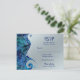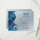 El texto en esta tarjeta de RSVP azul y plata es totalmente personalizable. El diseño de la tarjeta está inspirado en los trópicos, el agua, conchas paua, olas y reflejos. Perfecta para una boda de playa o destino o una boda con un tema de color azul y plata.