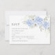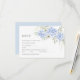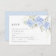 Elegante tarjeta de RSVP de boda floral, con un arreglo floral de hortensias delicadas azul pastel y tipografía elegante.