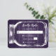 Tarjeta de RSVP de boda morada rústica con un tarro de Mason y corazones de arpillera contra un fondo de madera rústica. Personalice fácilmente esta linda tarjeta de RSVP morada rústica en línea. Hay artículos coincidentes disponibles para complementar esta tarjeta de RSVP de boda morada rústica romántica.