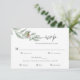 Esta tarjeta de respuesta simple pero elegante incluye una sección de elección de comida para sus invitados. Las opciones de comida son editables. Este diseño está inspirado en nuestra "Colección de boda del bosque delicado".