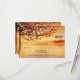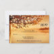 Una tarjeta de RSVP de boda otoño romántica con luces de cadenas en un árbol con vista al agua.