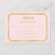 Estas elegantes tarjetas de RSVP de boda presentan un marco dorado falso elegante y un fondo rosa suave chic.